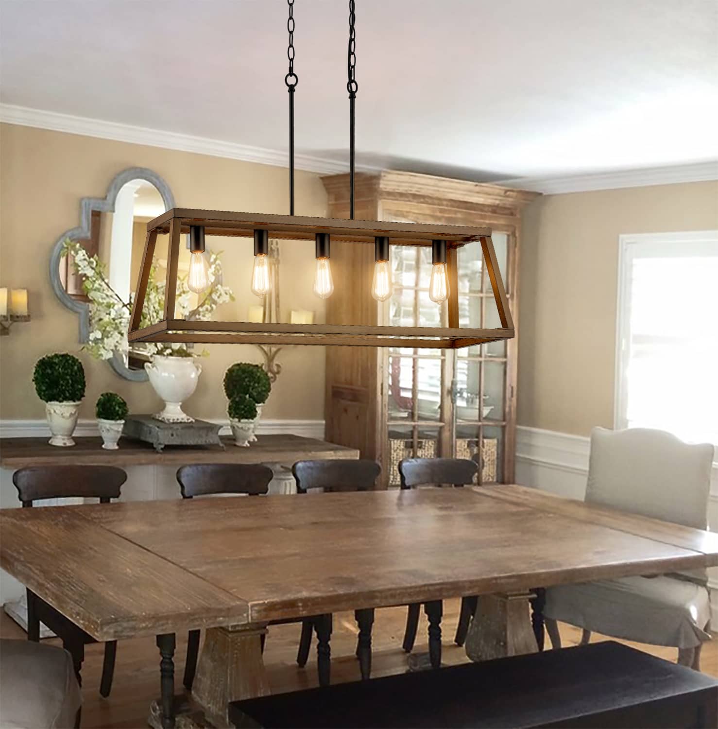 Farmhouse 5Light Chandeliers for Dining Room Wood Finish